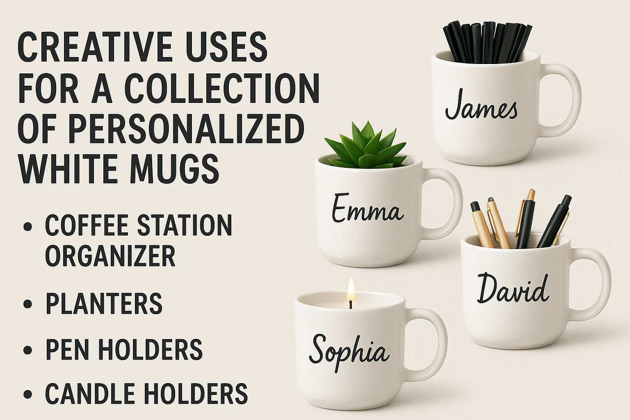 • Personalized white mugs offer practical and decorative benefits far beyond their original use.
