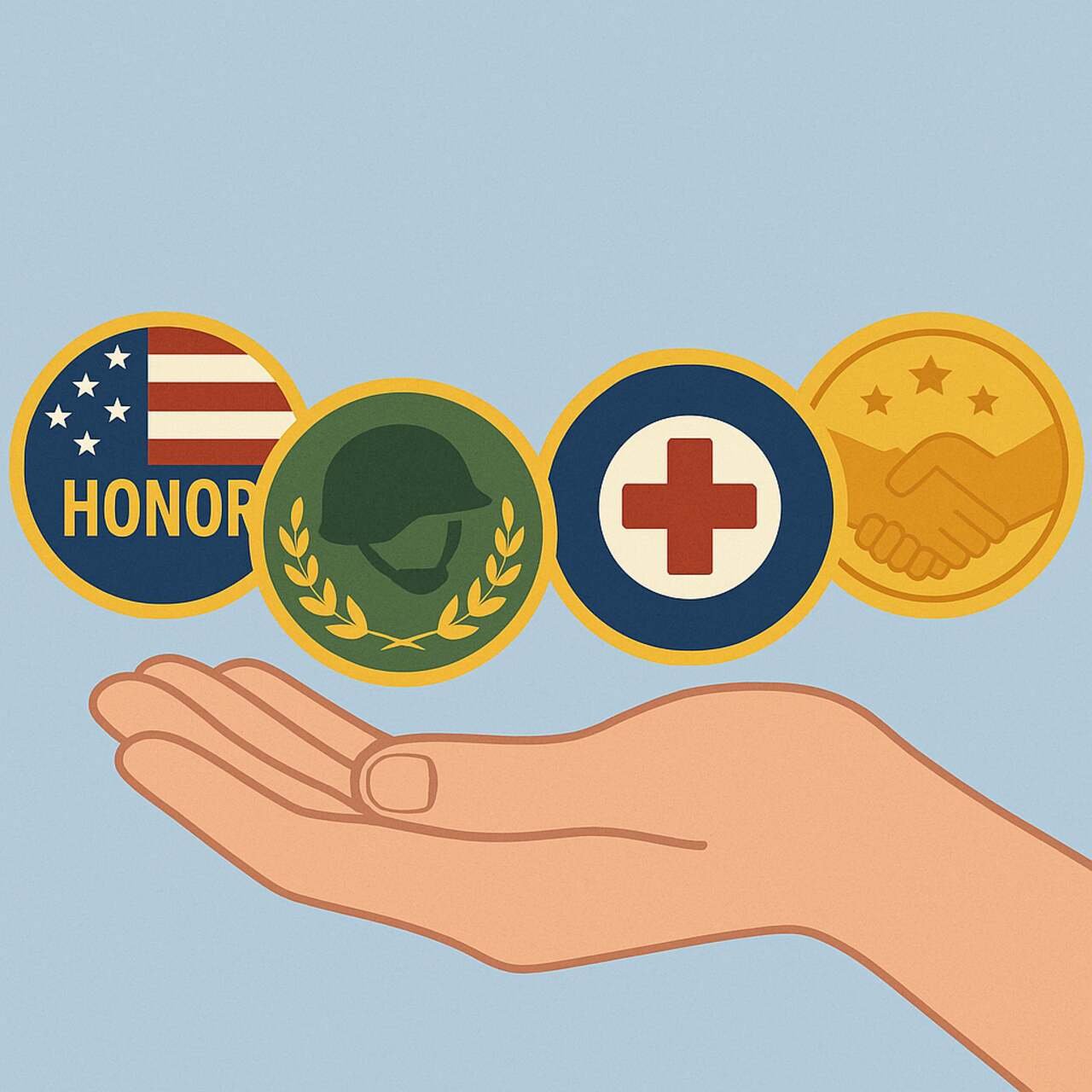 Custom challenge coins symbolizing honor, service, and unity held in an open hand.